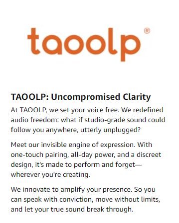 At TAOOLP, we set your voice free. We redefined audio freedom: what if studio-grade sound could follow you anywhere, utterly unplugged?
